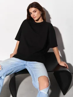 Лонгслив мужской оверсайз с длинным рукавом хлопок черный