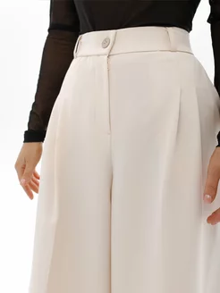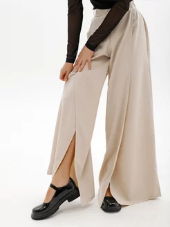 Брюки широкие палаццо с разрезами спереди нарядные бежевые