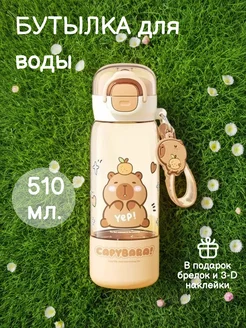 Бутылка для воды детская Капибара с трубочкой в школу
