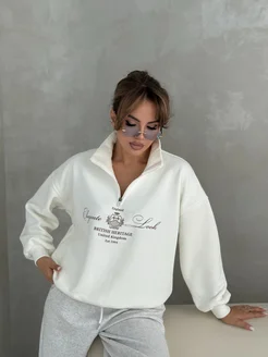 Свитшот-Поло оверсайз с начесом и надписью y2k