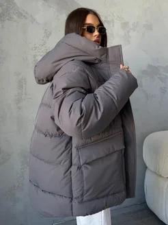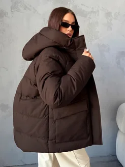 Куртка зимняя короткая оверсайз с капюшоном