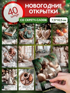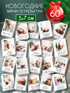 Новогодние мини открытки с пожеланиями 60 шт