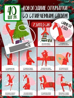 Новогодние мини открытки с предсказаниями от красной лошади