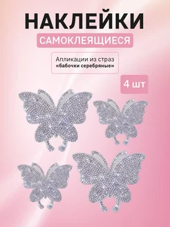 Наклейки самоклеящиеся, бабочки серебряные со стразами