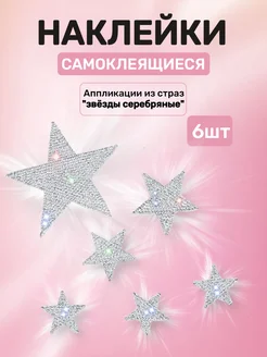 Наклейки самоклеящиеся, звезды серебряные со стразами