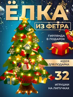 Елка из фетра новогодняя на стену с гирляндой