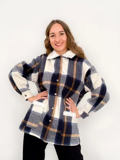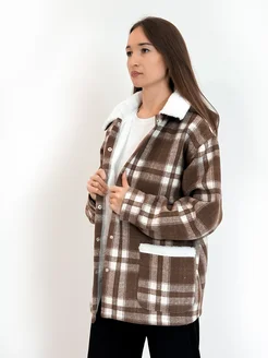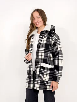 Рубашка с мехом в клетку с капюшоном
