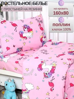 Постельное белье детское 160х80 на резинке единороги