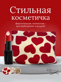Тканевая косметичка большая с сердечками