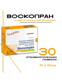 Повязка ВоскоПран с метилурациловой мазью, 10x10 см, 30 шт