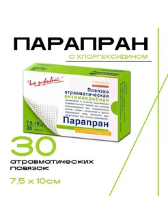 Повязка Парапран с хлоргексидином, 7.5x10 см, 30шт