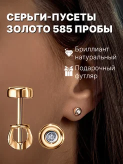 Серьги пусеты гвоздики золото 585 с бриллиантами
