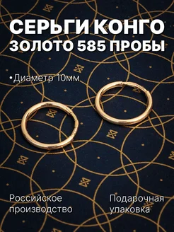 Серьги кольца золотые 585 пробы ювелирные 10 мм