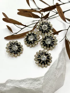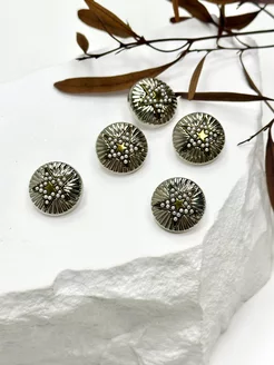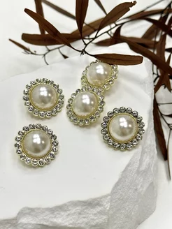 Декоративные пуговицы с жемчугом и стразами на ножке 5шт