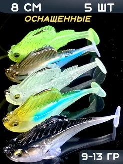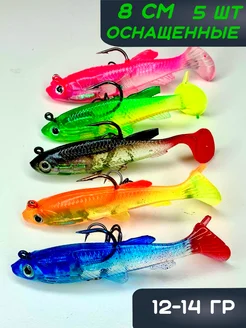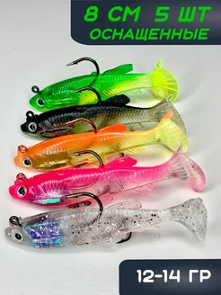 Силиконовые приманки виброхвост 5 штук 8 см оснащенные