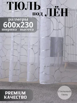 Тюль под лен 600х230 в гостиную готовая с утяжелителем Штора