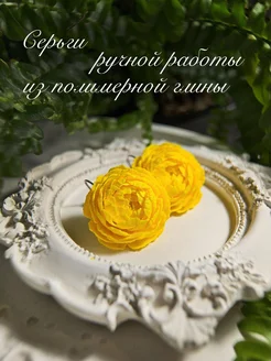 Серьги ручной работы из полимерной глины. Жёлтый пион