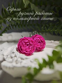 Серьги гвоздики цветы ручной работы из полимерной глины