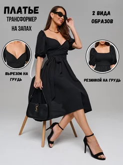 Платье двустороннее повседневное на запах с фонариками
