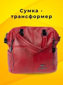 Сумка женская рюкзак трансформер 2 в одном красная из кожи