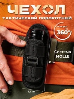 Тактический чехол для фонаря, черный, 360°, 15x5,5x3,5 см