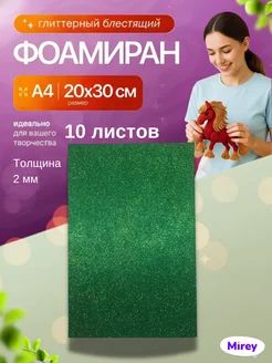 Фоамиран зелёный глиттерный А4 2 мм для поделок