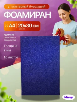 Фоамиран синий глиттерный А4 2 мм для поделок