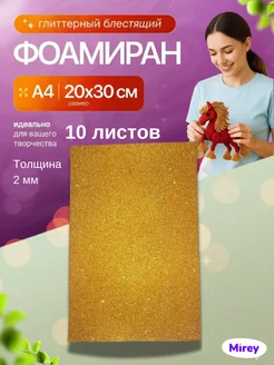 Фоамиран золотой глиттерный А4 2 мм для поделок