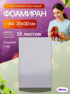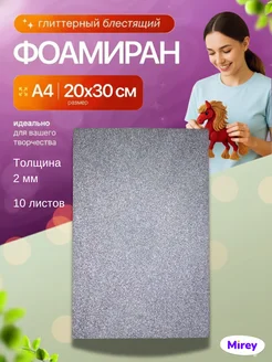 Фоамиран серебряный глиттерный А4 2 мм для поделок