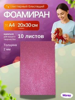 Фоамиран розовый глиттерный А4 2 мм для поделок