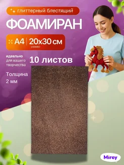 Фоамиран глиттерный 2 мм коричневый а4 для творчества