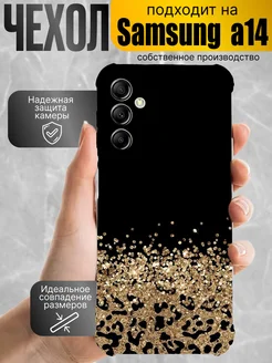 чехол на samsung a14 с принтом блестки золото