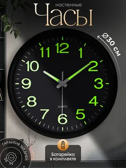 Часы настенные светящиеся в темноте 30 см, декор для кухни