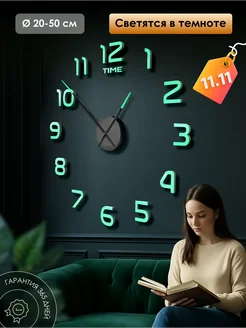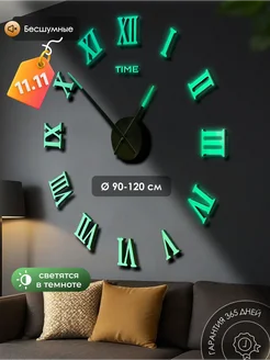 Бесшумные 3D часы настенные большие светящиеся в темноте