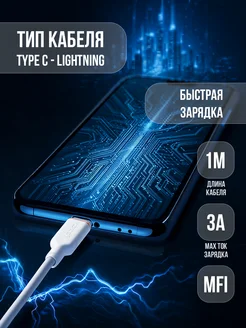 Кабель для iPhone Lightning Type-c быстрая зарядка