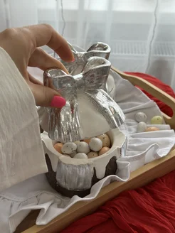 Конфетница пасхальная кулич с бантом