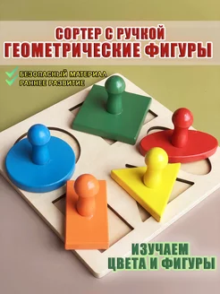 Сортер вкладыши Монтессори крупные фигуры с ручкой