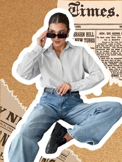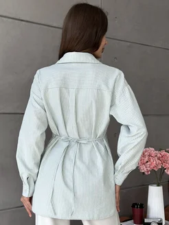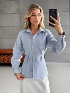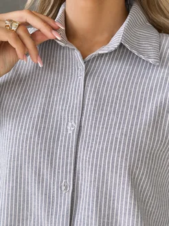 Рубашка оверсайз в полоску удлиненная полупрозрачная