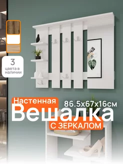 Вешалка настенная деревянная с зеркалом и полками