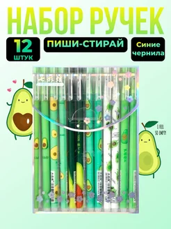 Ручки пиши стирай гелевые синие набор 12 штук Авокадо