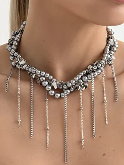 Колье на шею украшение бижутерия жемчуг чокер многослойное