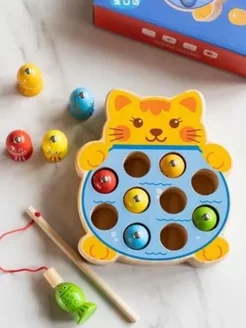 Магнитная Рыбалка развивающая игра сортер Котик и Рыбки
