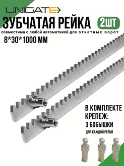 Оцинкованная зубчатая рейка для откатных ворот 8 мм 2 шт