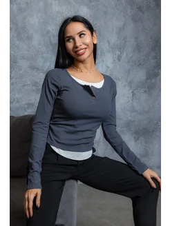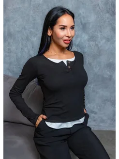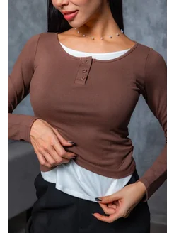 Лонгслив базовый имитация двойки
