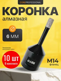 Коронка алмазная 6 мм для УШМ м14 по керамограниту 10 штук