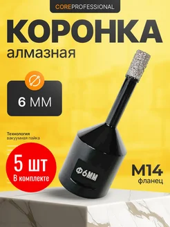 Коронка алмазная 6 мм для УШМ м14 по керамограниту 5 штук