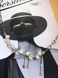 Цепочка с жемчугом и подвесками звездочками