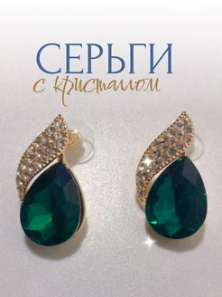 Серьги с зеленым кристаллом и стразами
