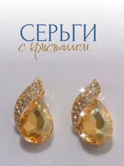 Серьги с кристаллом под топаз и стразами