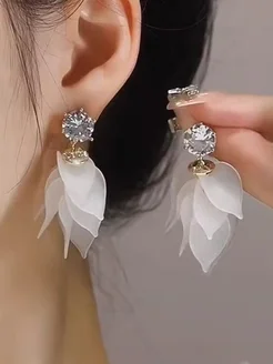 Серьги лепестки с большим кристаллом